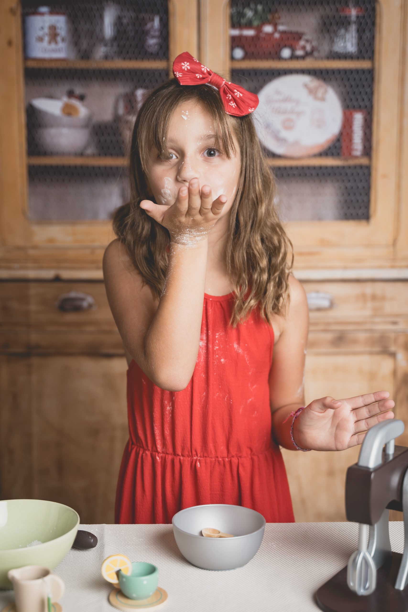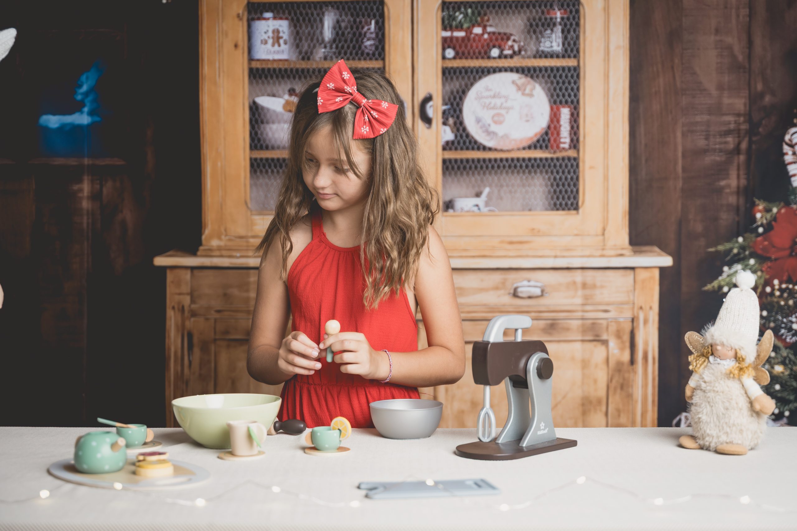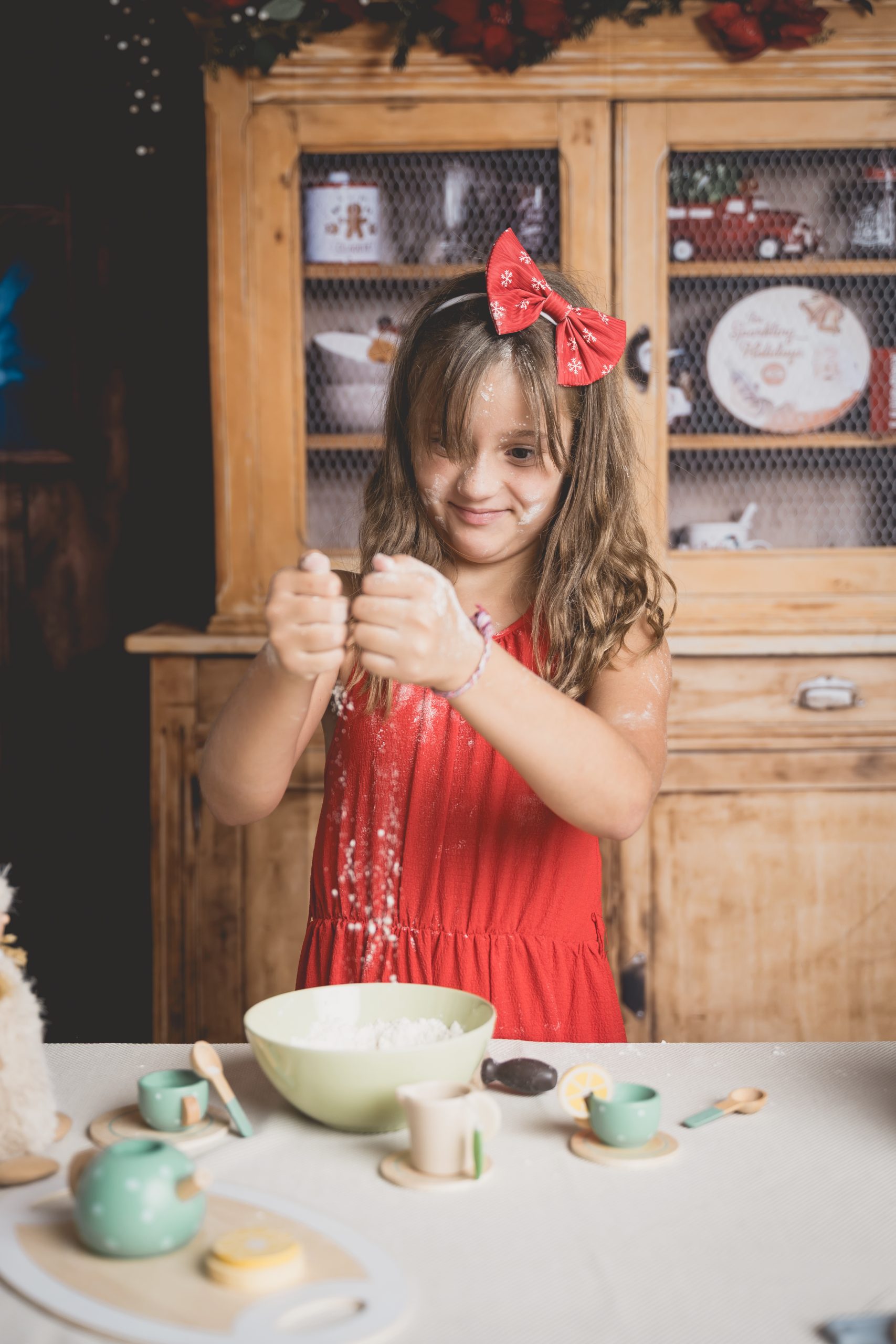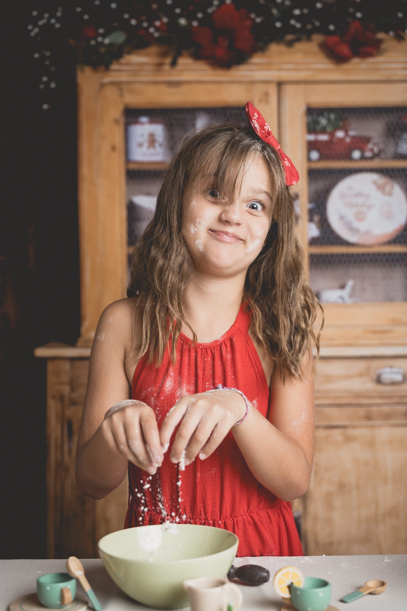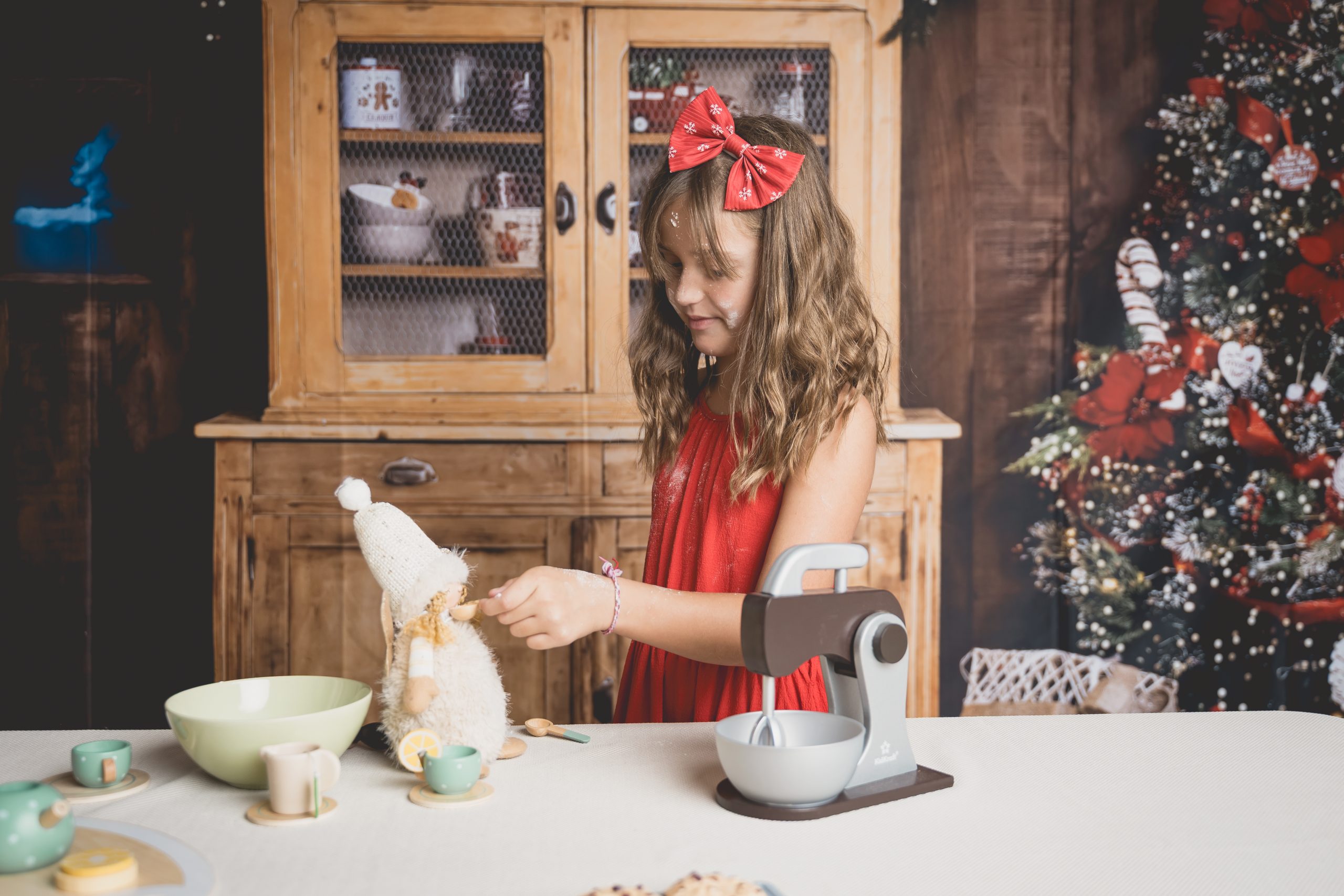 Un décor gourmand et cosy où les enfants s’amusent à préparer des biscuits, comme de vrais petits lutins. Parfait pour capturer des sourires naturels et des instants de jeu.
